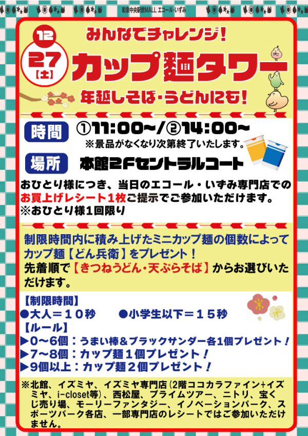 エコール・いずみ専門店の当日のお買い上げレシート1枚ご提示でご参加いただけます。