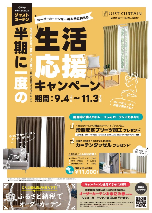 ジャストカーテンでは、只今半期に一度のキャンペーンを開催中!!